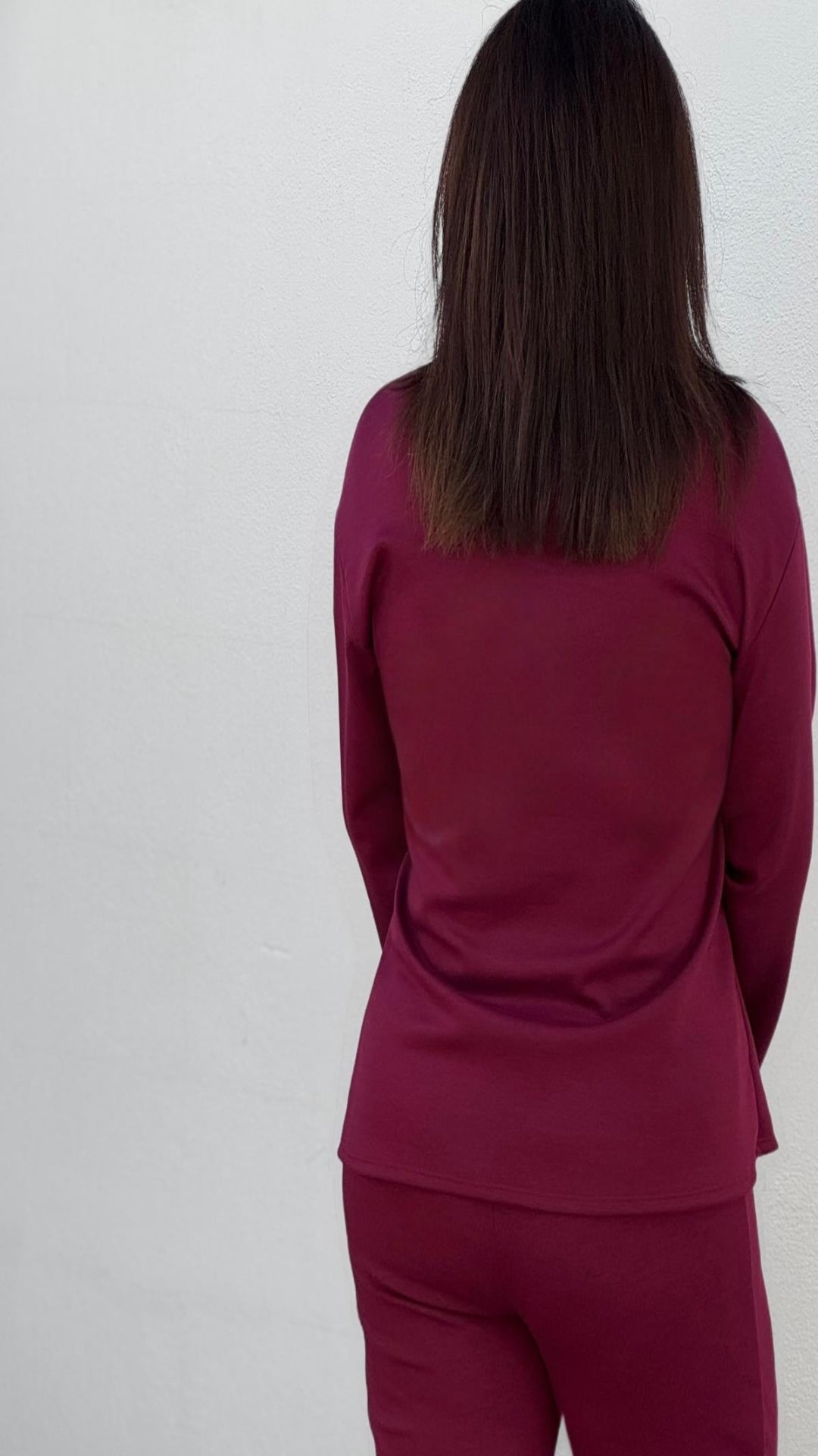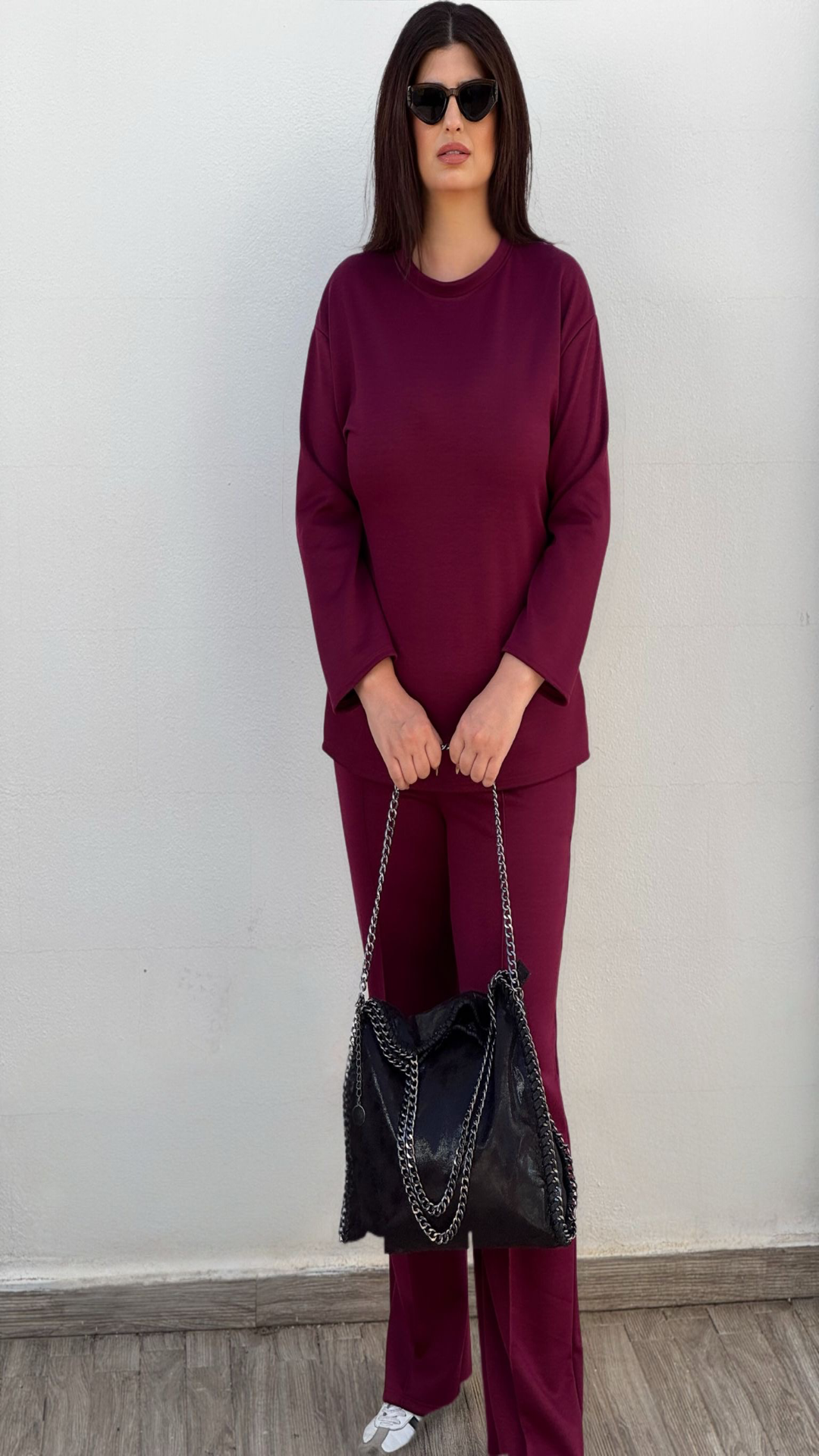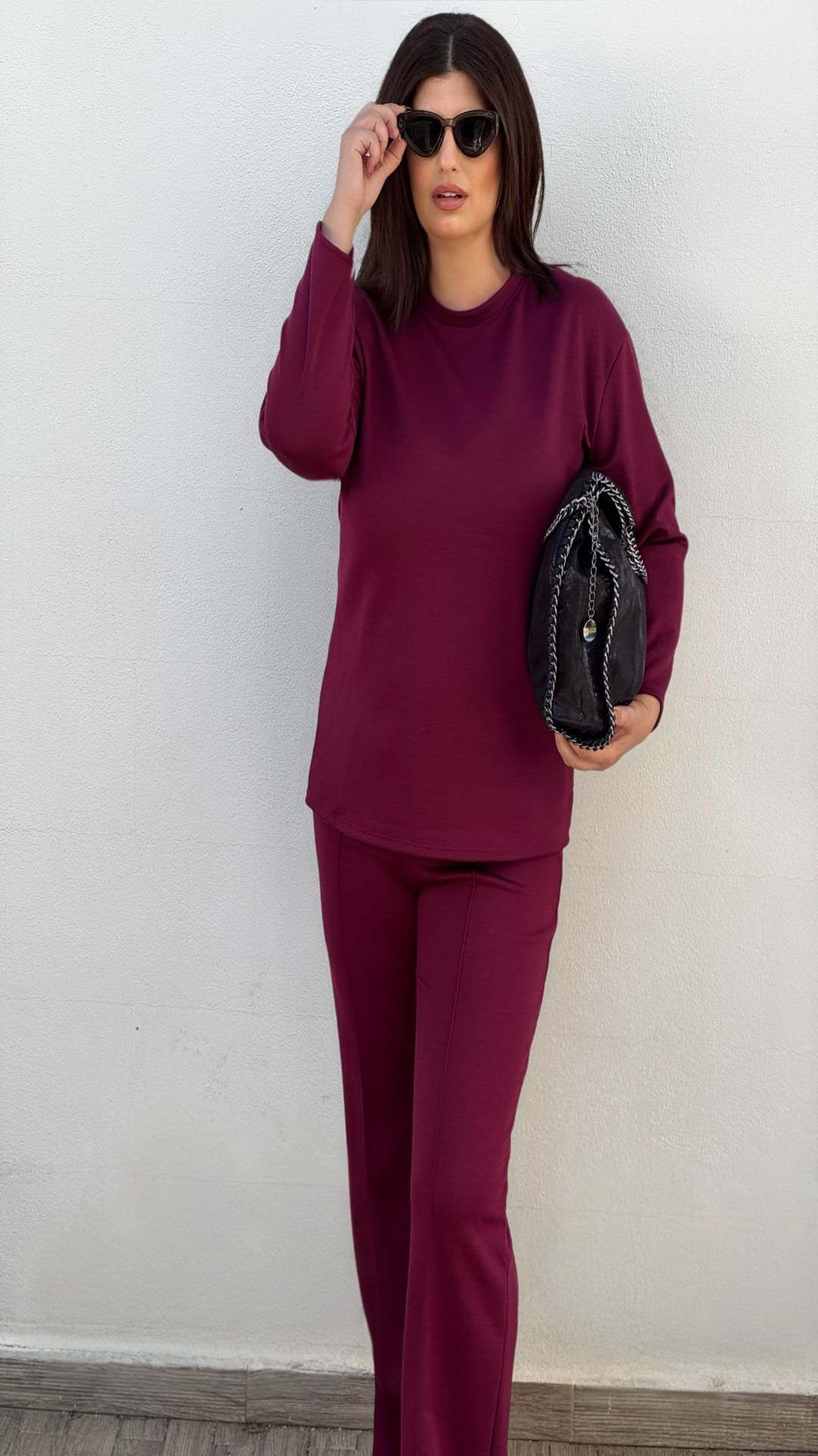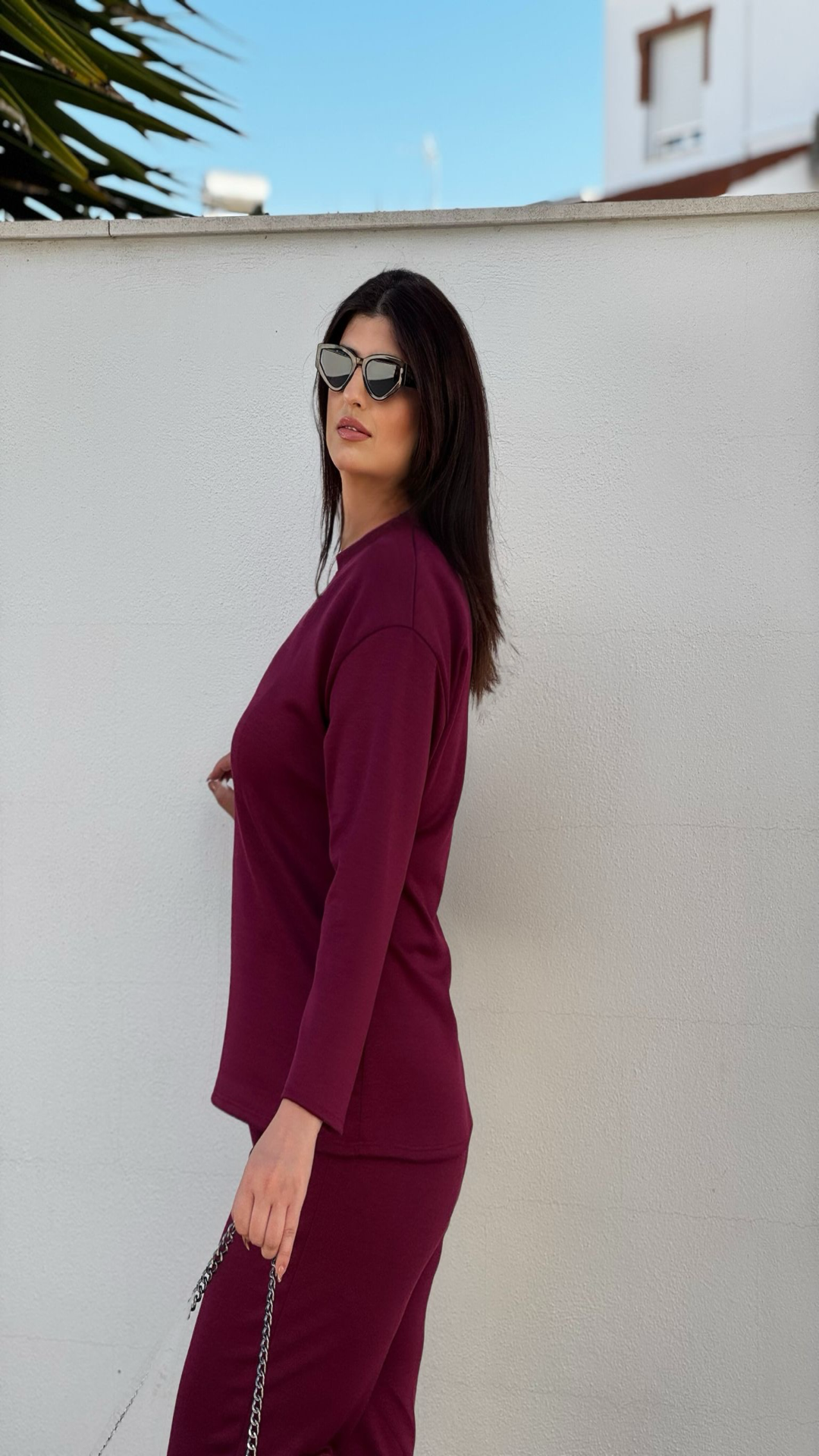 Conjunto de sudadera y pantalón de estilo básico. Tejido soft .Sudadera oversize de cuello redondo y manga larga. Pantalón de corte recto con cintura elástica.