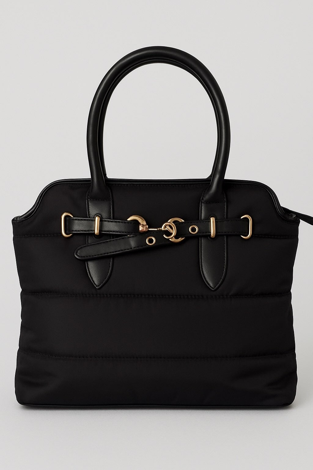 Bolso shopper de nylon. Tamaño grande. Forro y bolsillo interior. Cierre de cremallera. Asas para el hombro fijas. Bandolera ajustable y extraíble . Detalle de cinturón con cierre dorado.