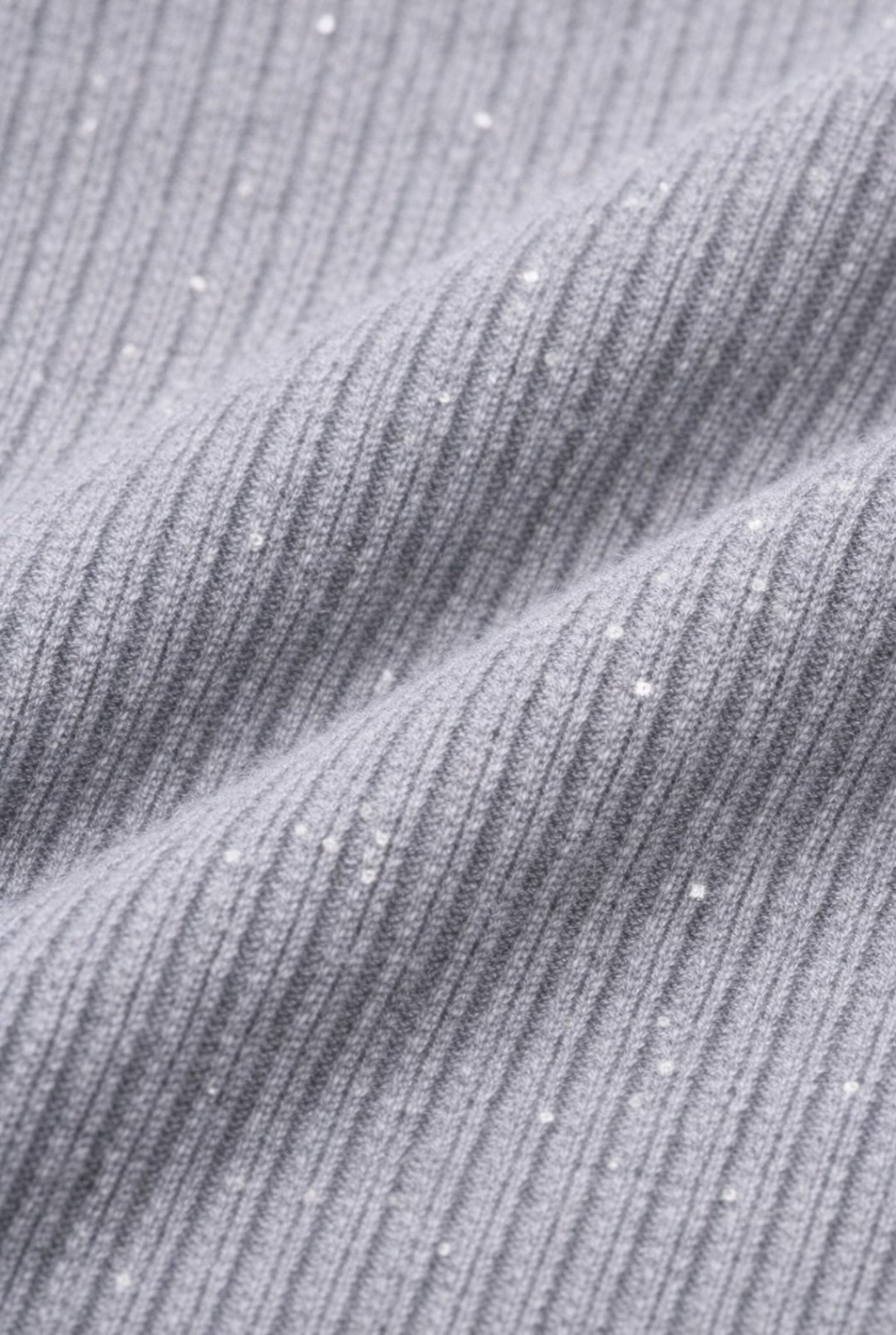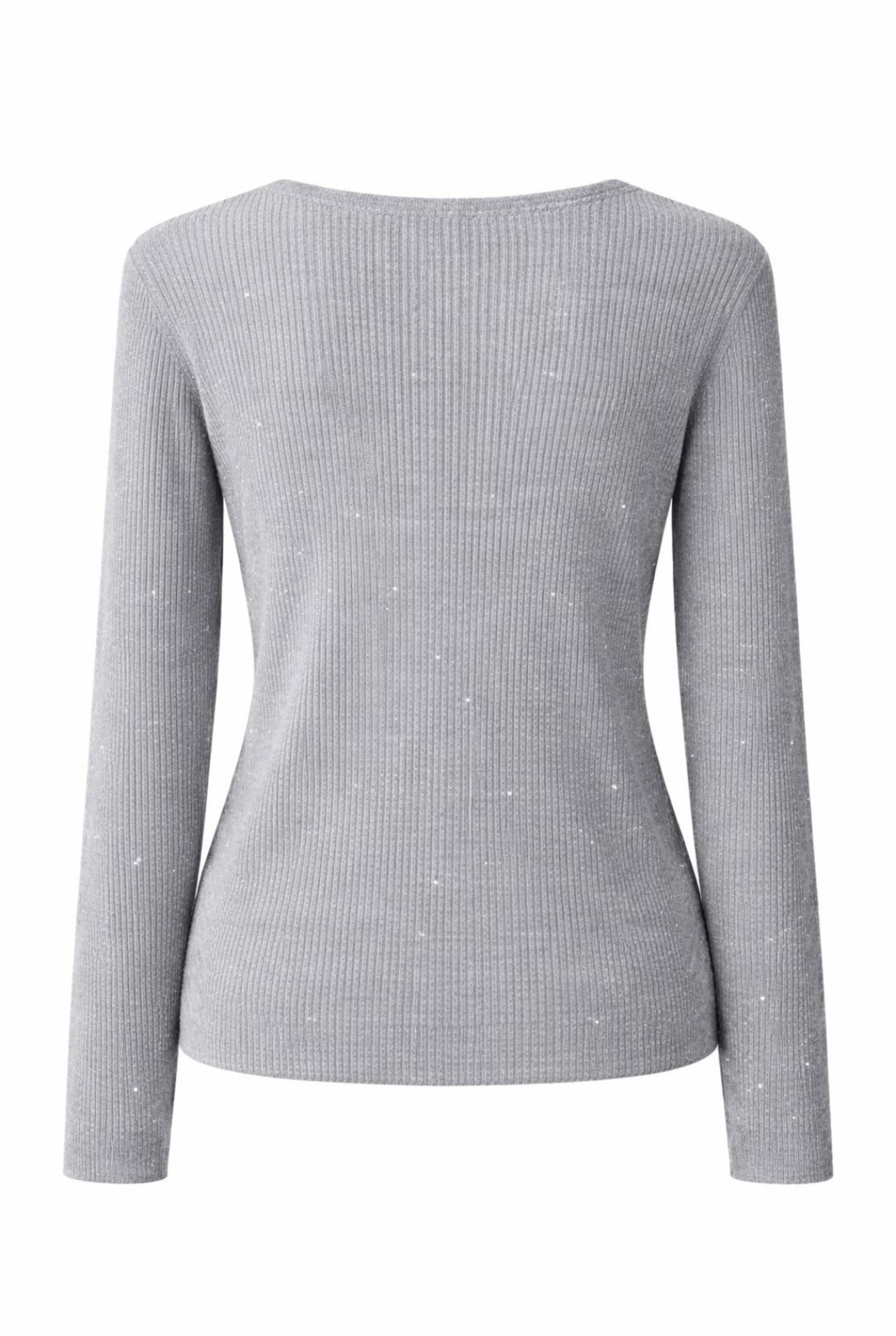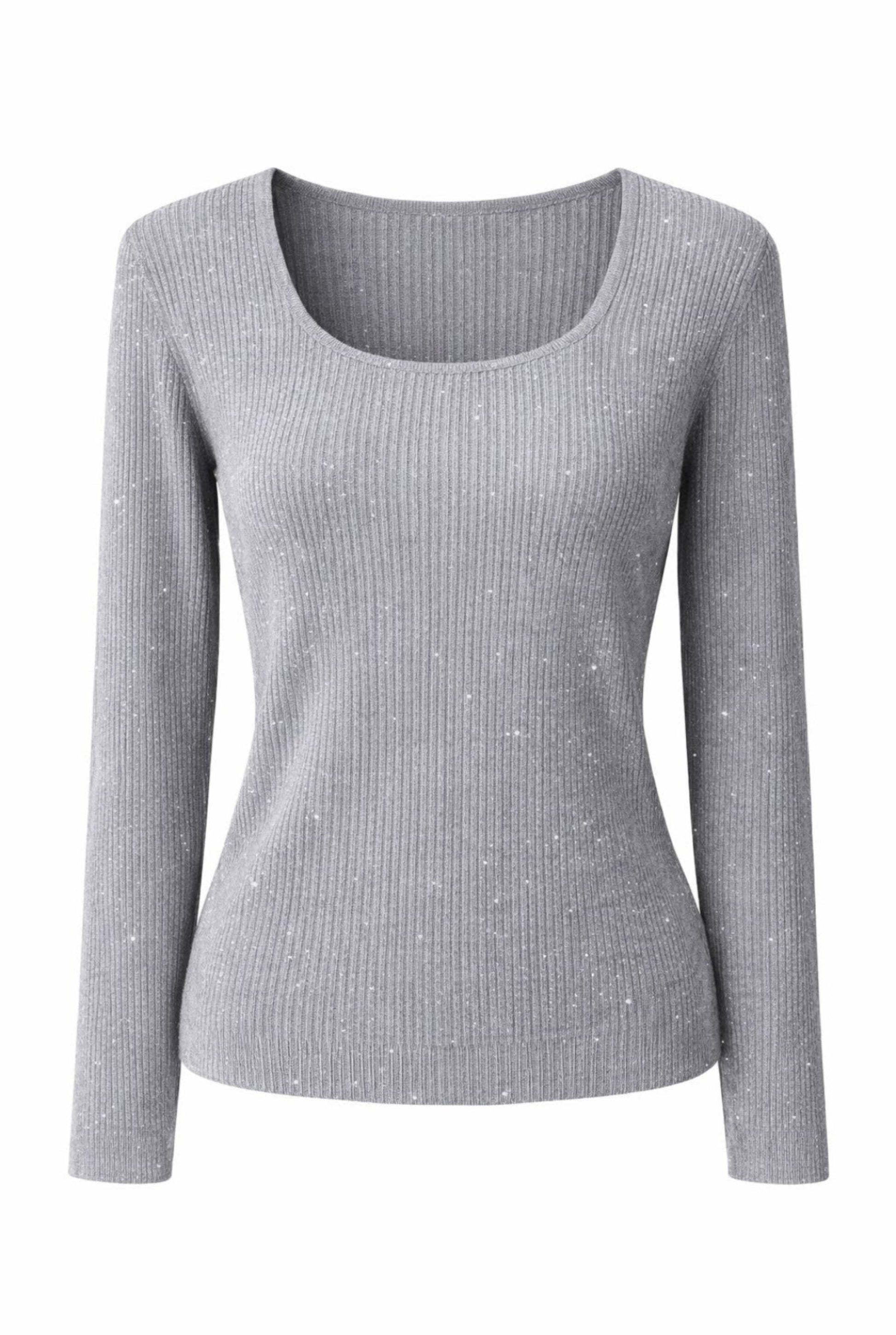 Jersey punto canalé de cuello cuadrado y manga larga. Detalle brillos.
