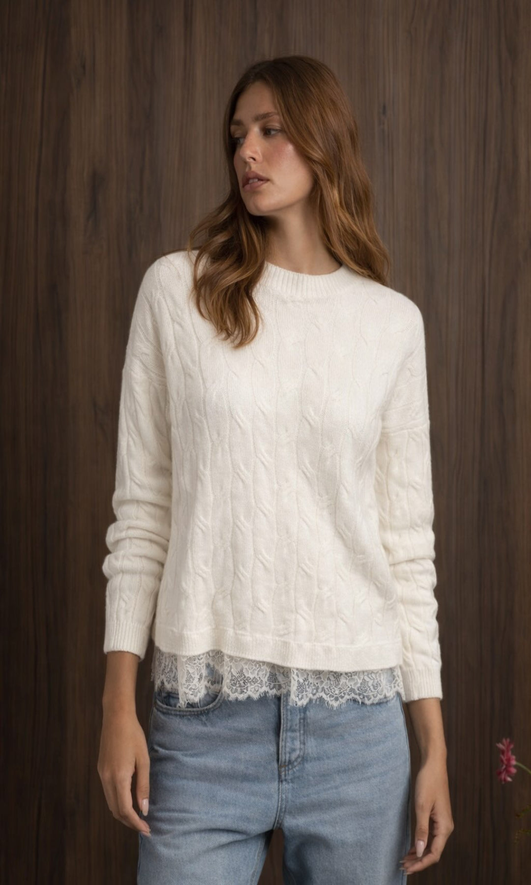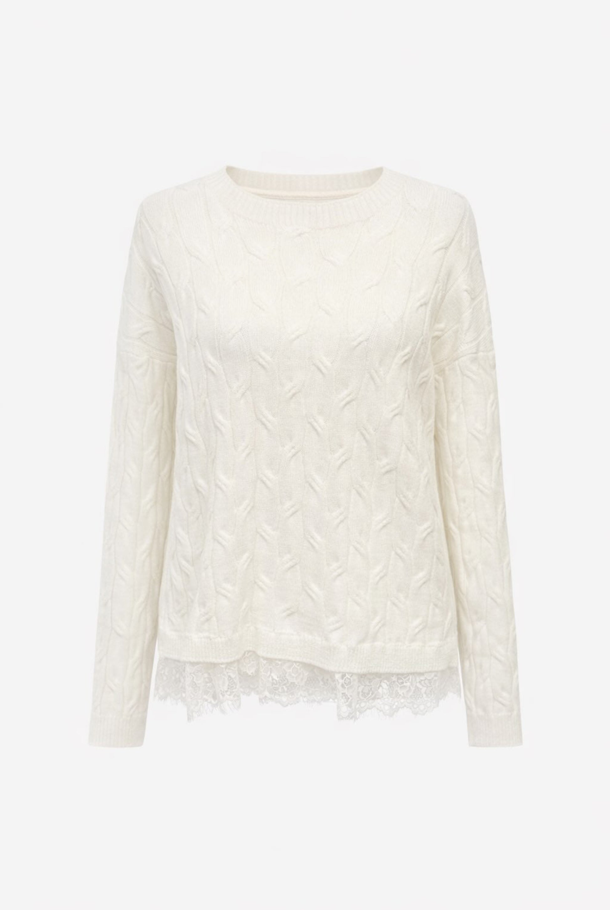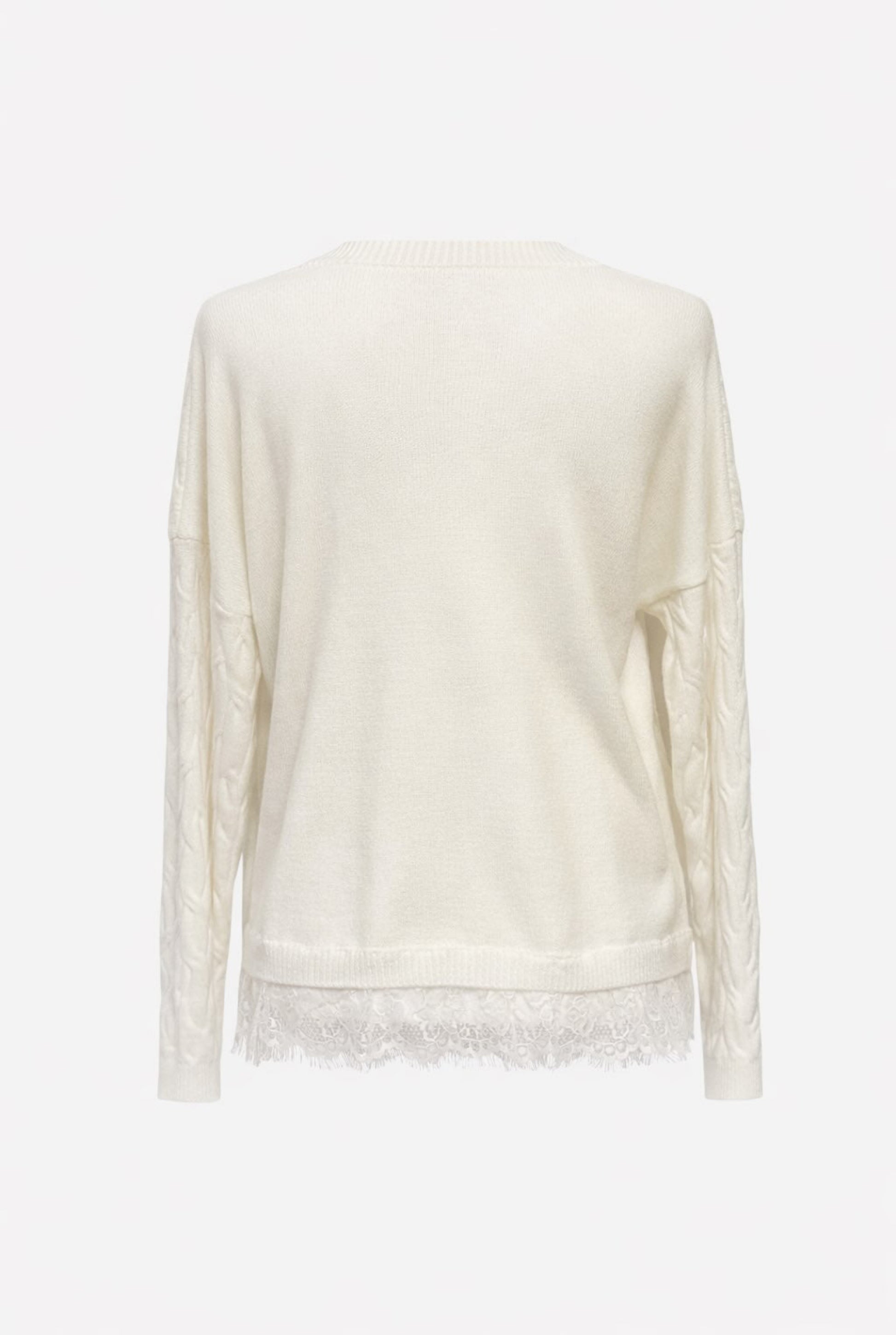 Jersey de cuello redondo y manga larga. Bajo con tejido combinado con encaje.