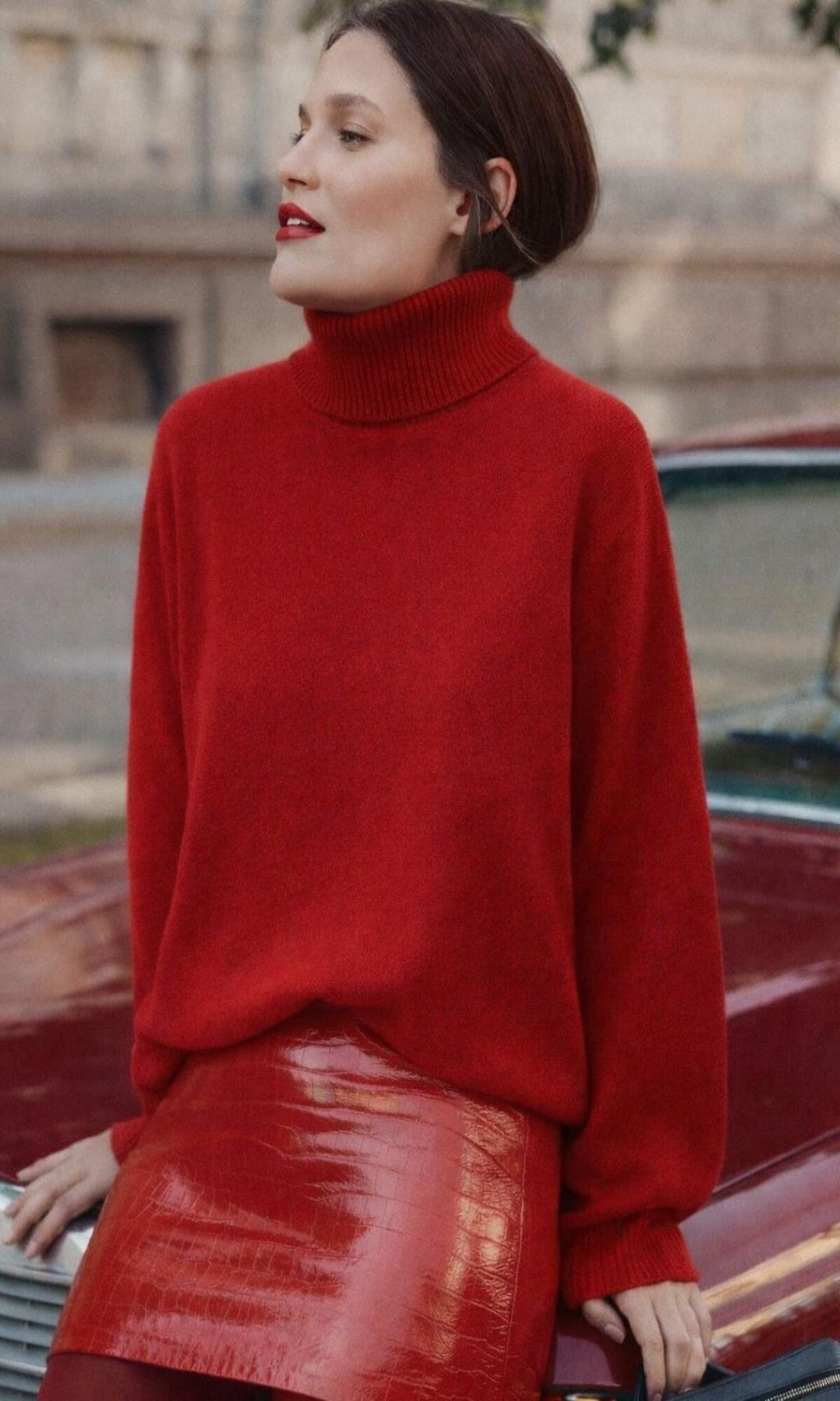 Jersey de punto liso con cuello subido y manga larga.