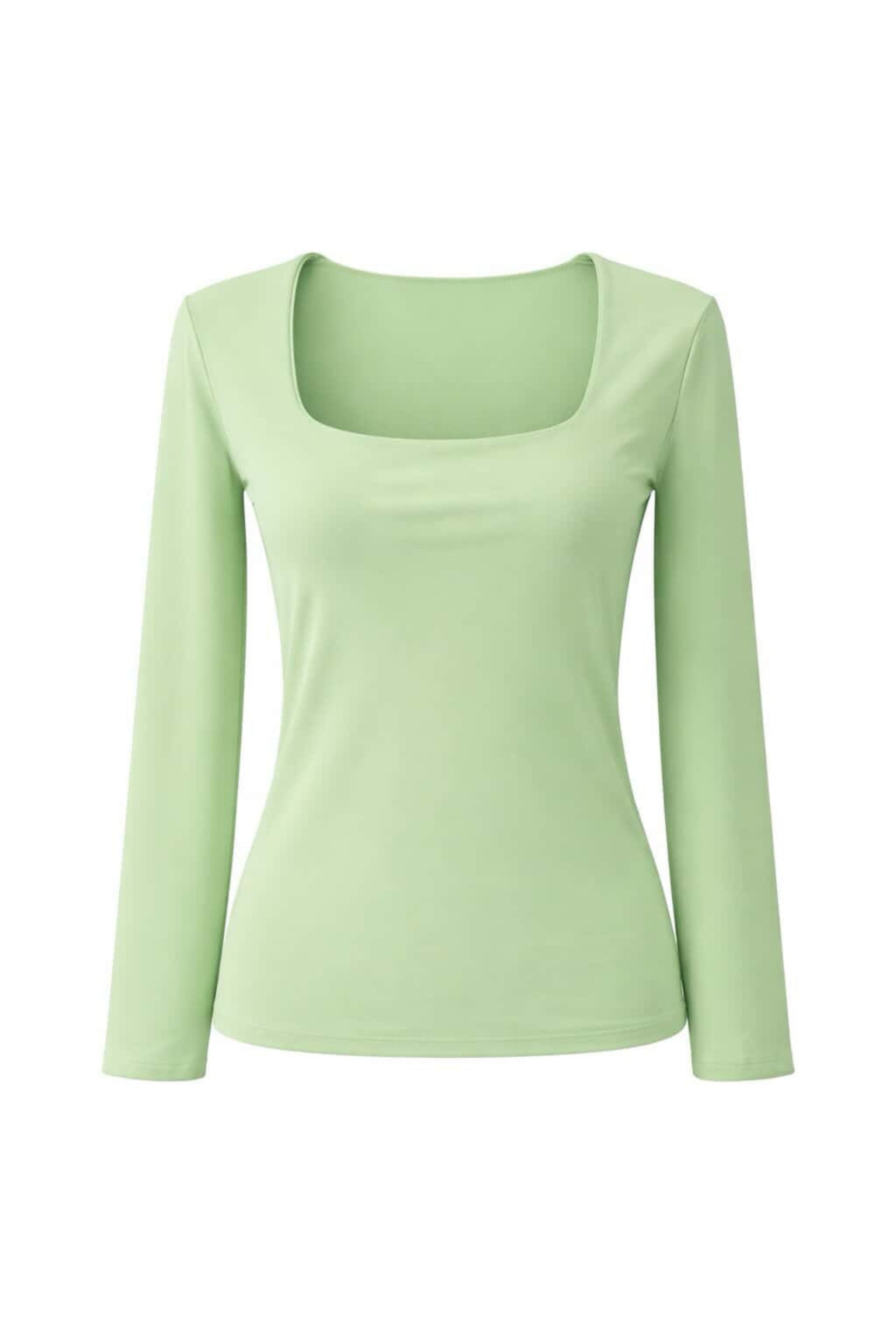 Top entallado de lycra , tiene escote cuadrado y manga larga.