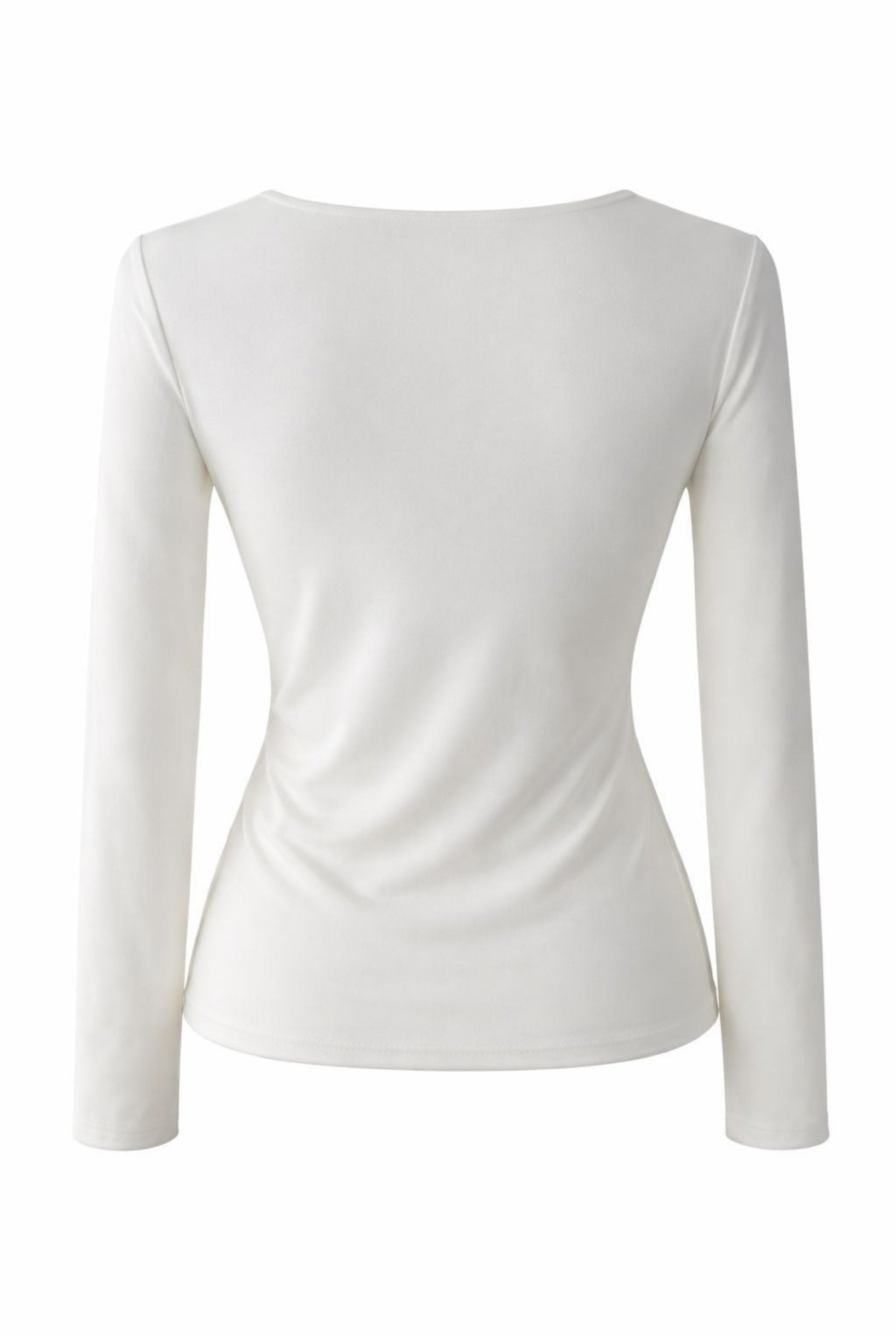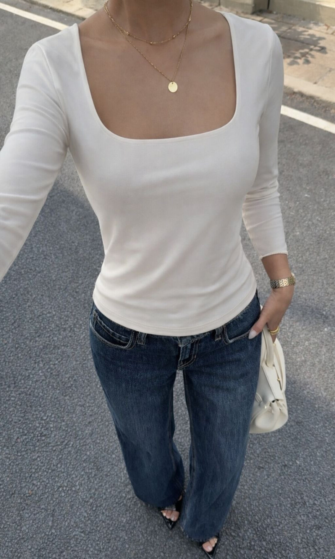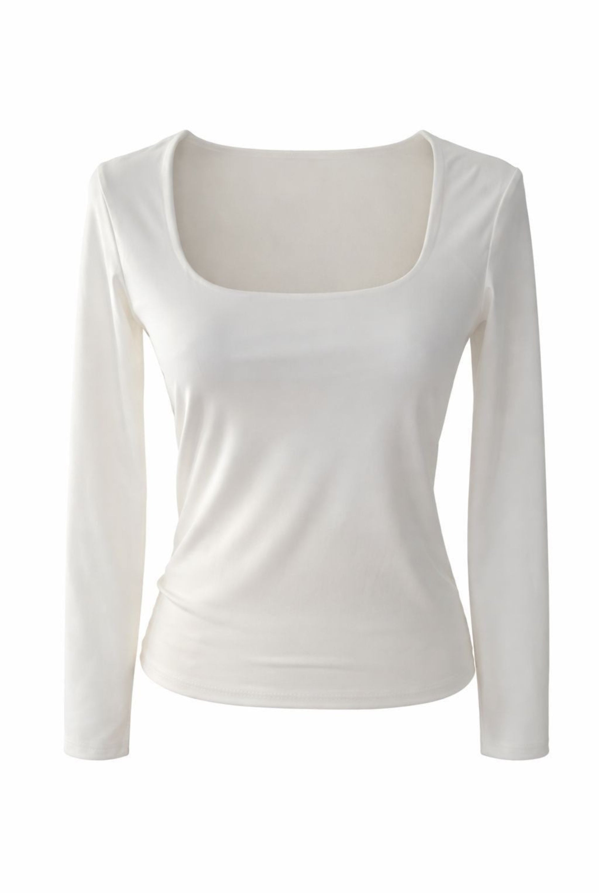 Top entallado de lycra , tiene escote cuadrado y manga larga.
