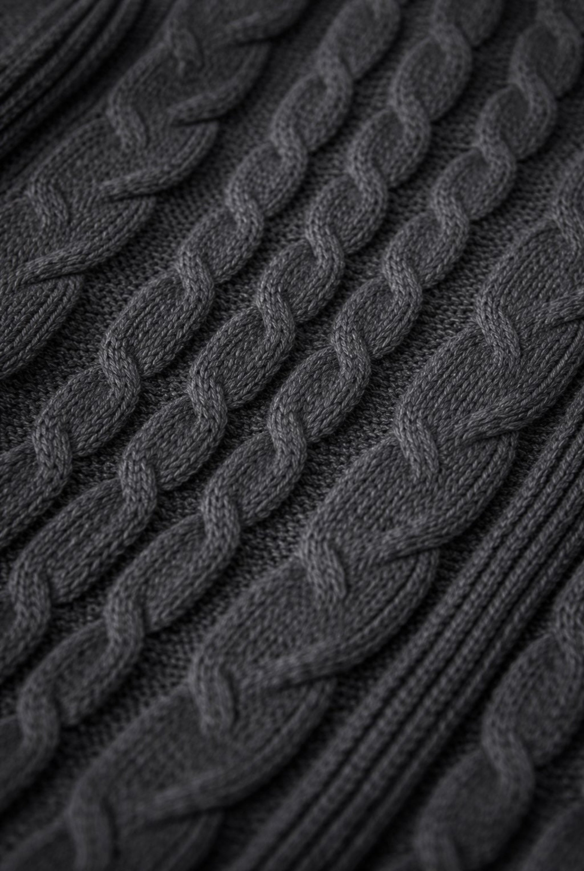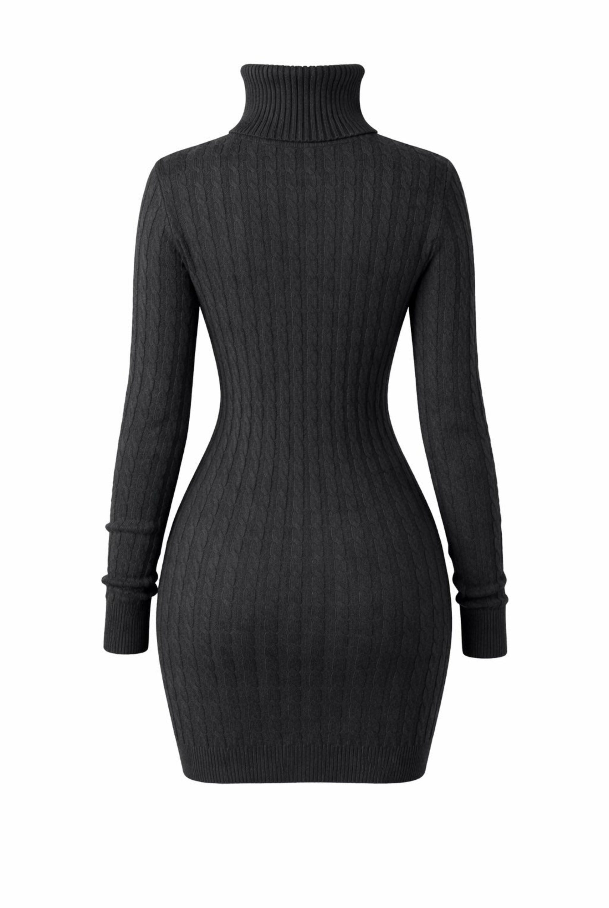 Vestido corto mini de punto trenzado. Diseño recto. Cuello vuelto. Manga larga.