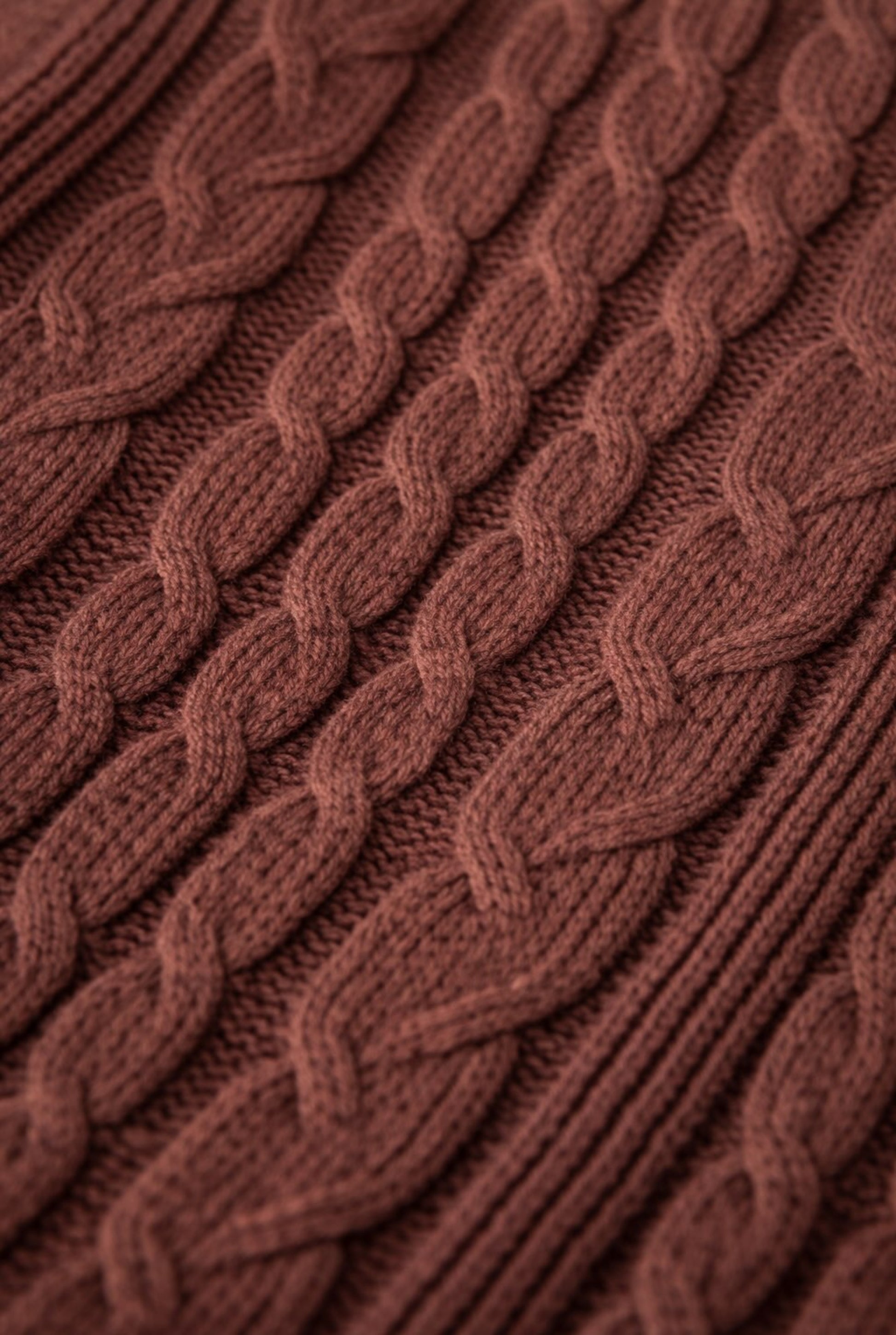 Vestido corto mini de punto trenzado. Diseño recto. Cuello vuelto. Manga larga.
