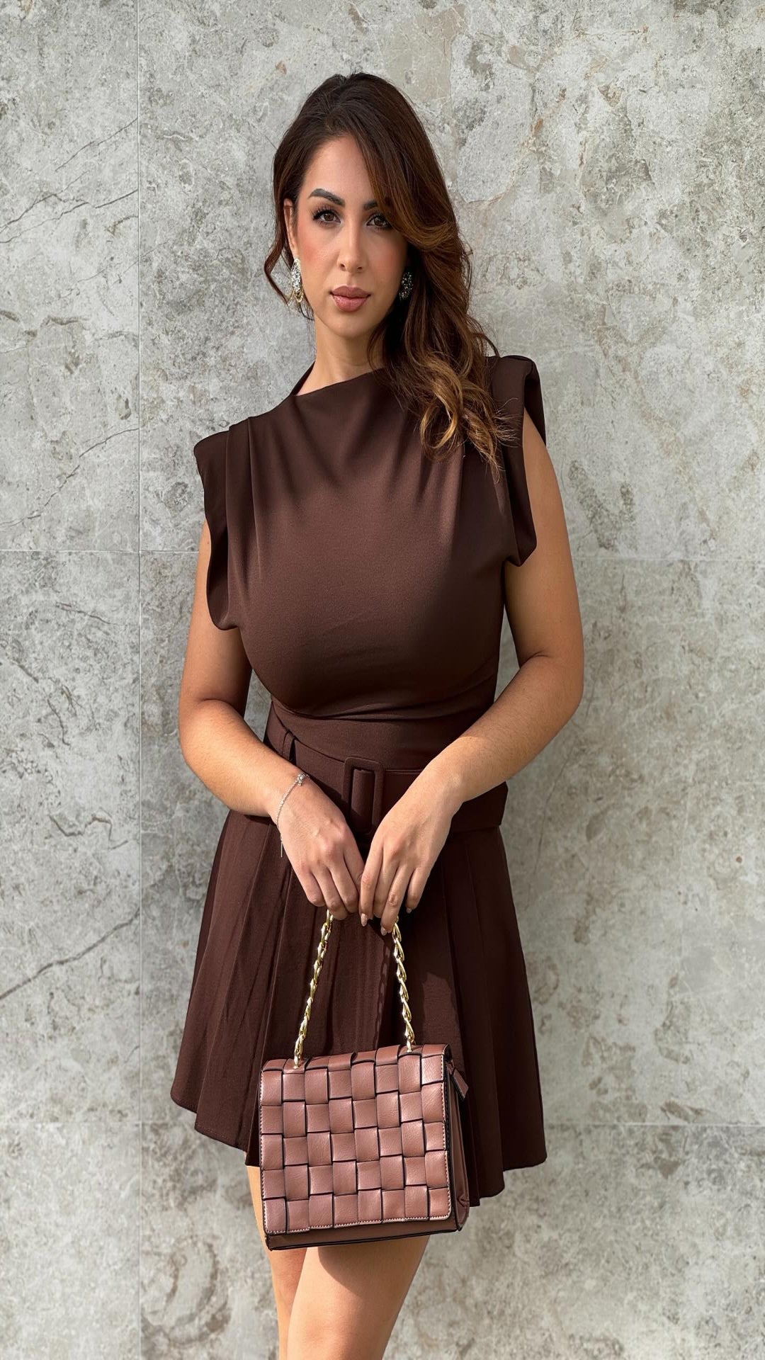 Falda pantalón con pliegues y cinturón. Forro interior. Cintura elástica.
